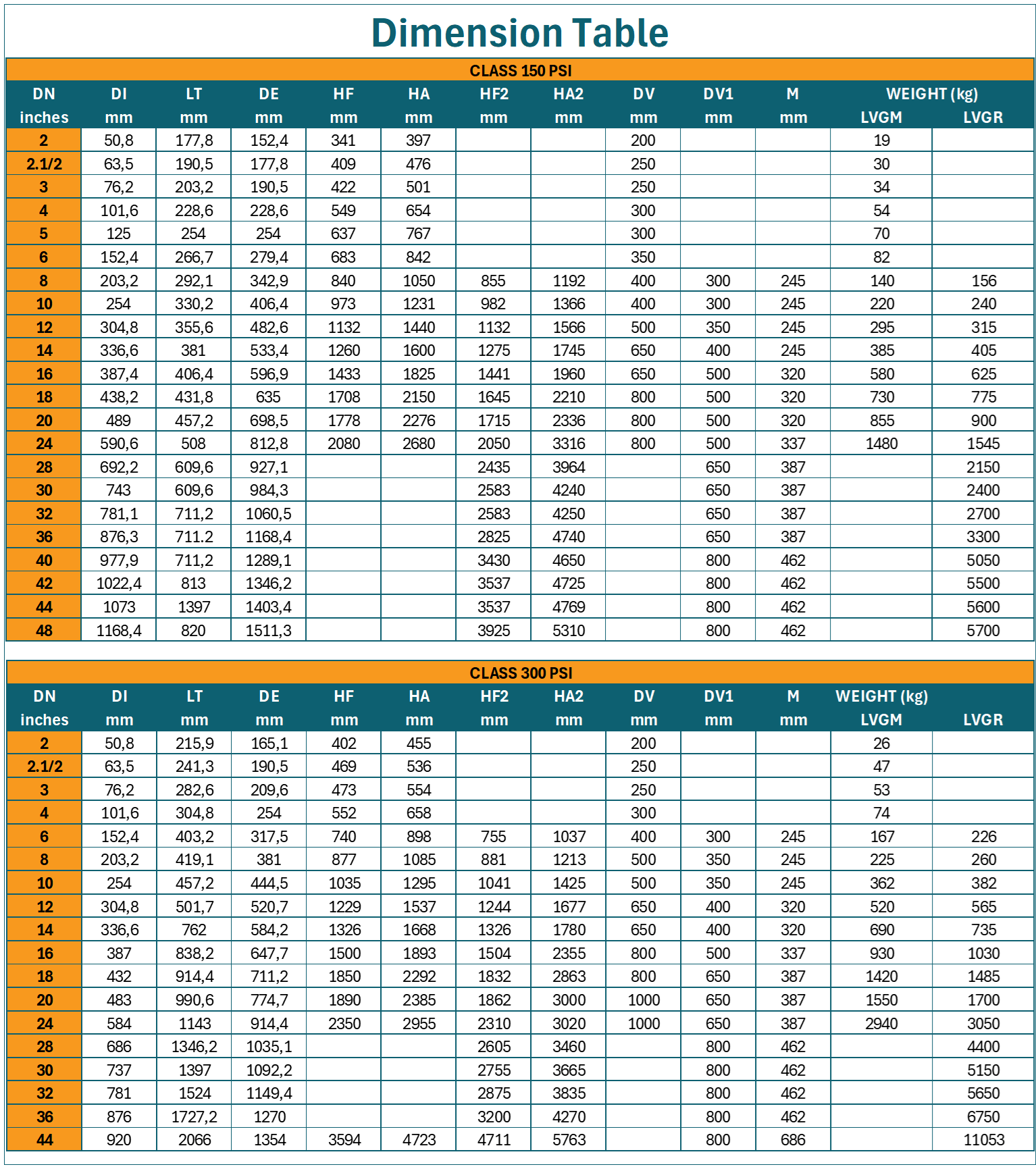2″ (DN050) to 48″ (DN1200)