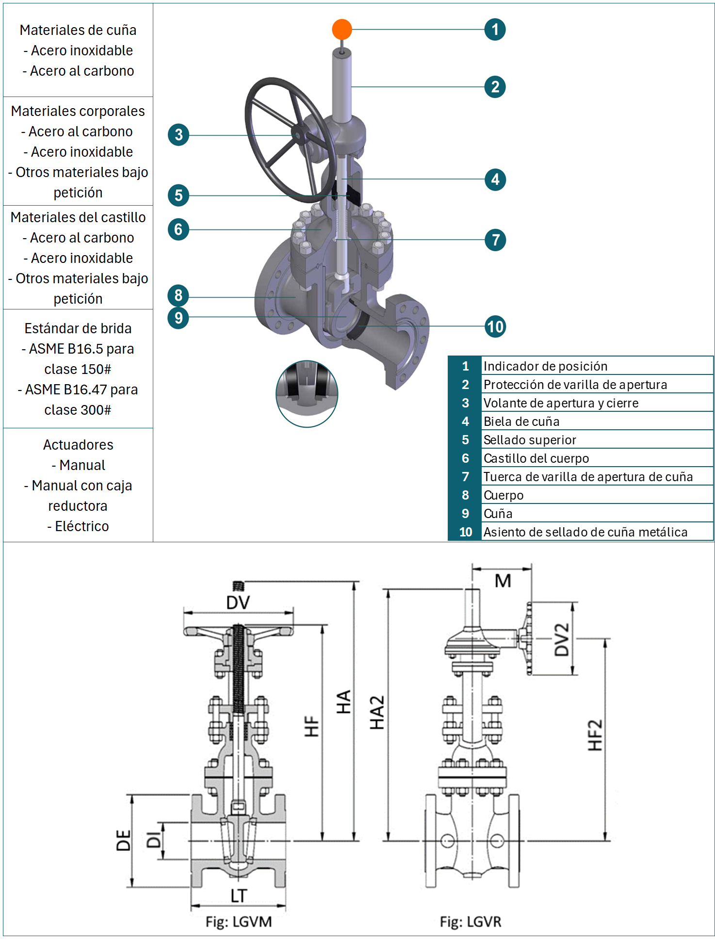 Las válvulas de compuerta Leeds LVG están diseñadas principalmente para su uso en el control de procesos en aplicaciones de bombeo de agua limpia o recuperada, con tamaños de servicio de 2″ a 48″ en la clase de 150 lb y de 2″ a 44″ en la clase de 300 lb. Con alta resistencia al desgaste, se puede suministrar en diferentes materiales de cuña y asiento, proporcionando un mejor desempeño en diferentes procesos.