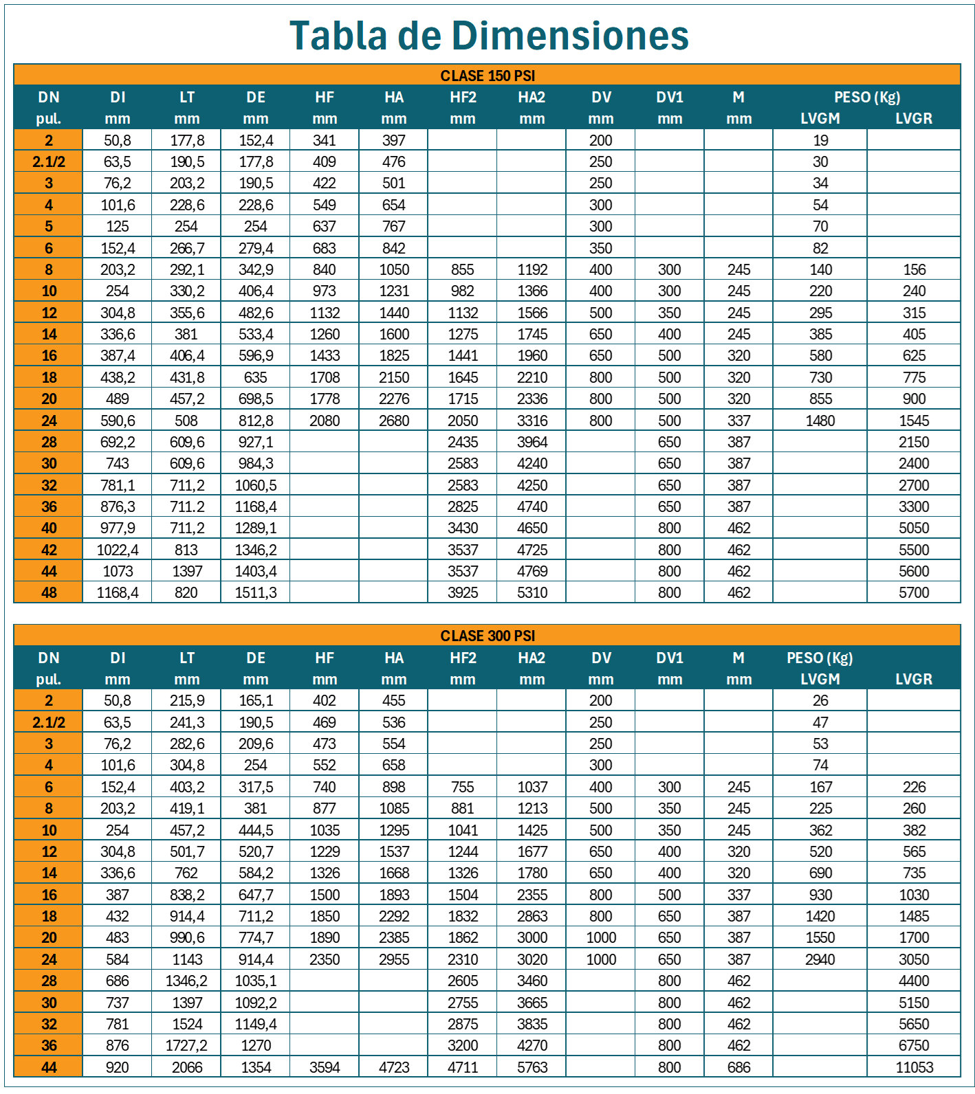 2″ (DN050) a 48″ (DN1200)