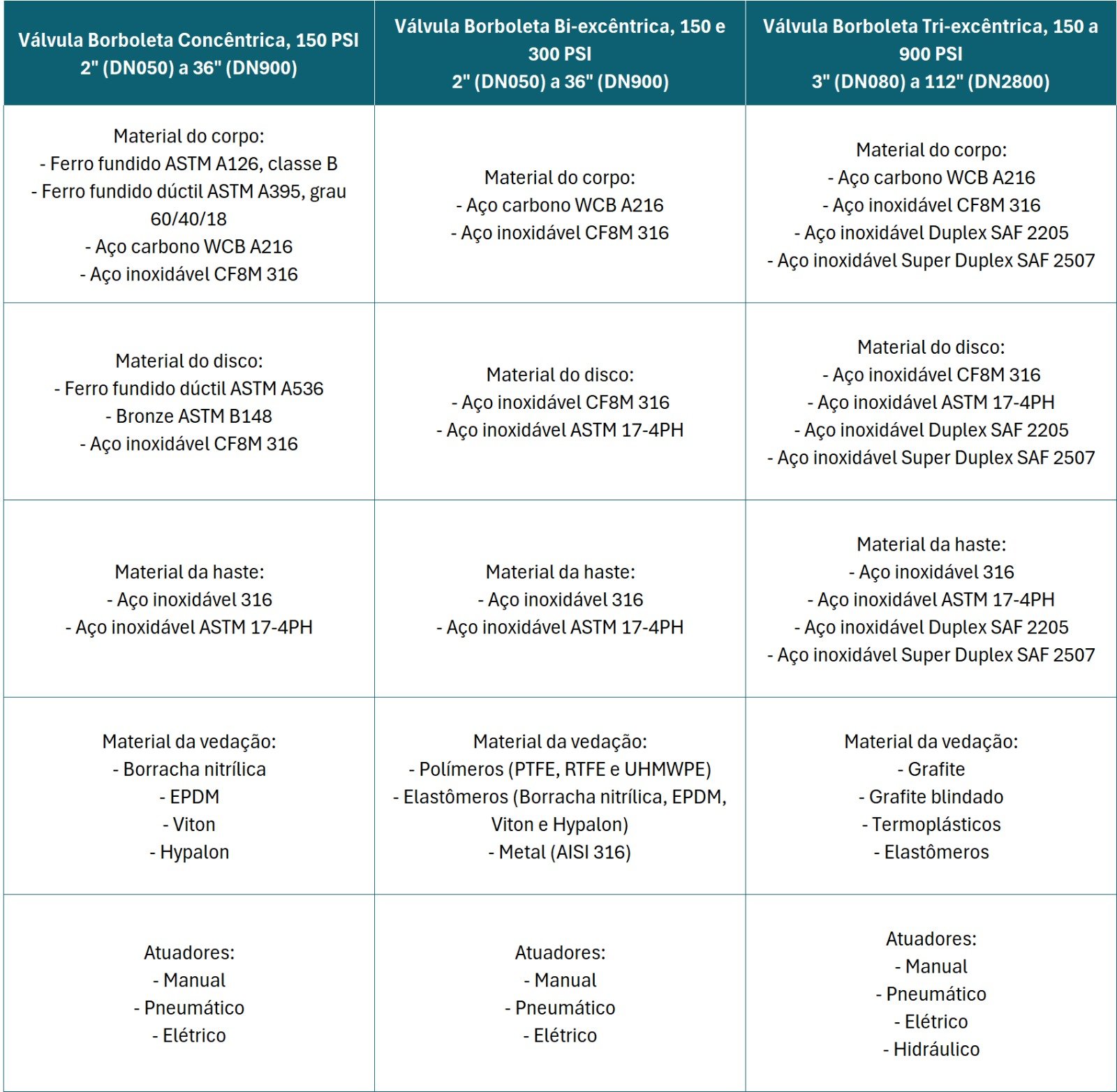 Válvula Borboleta Concêntrica, Bi e Tri Excêntrica